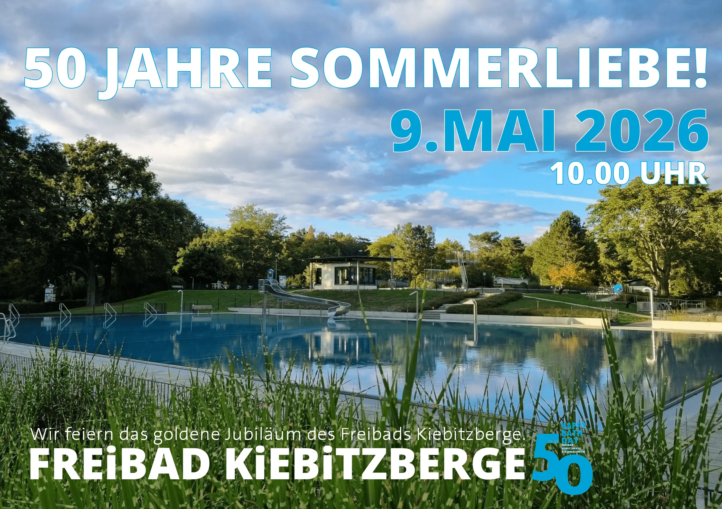am Samstag, den 09. Mai, findet im Freibad Kiebitzberge das 50‑jährige Jubiläum statt. Das Event startet um 10 Uhr, und wir freuen uns sehr, dass wir mit einem eigenen Parkour‑Angebot dabei sein dürfen.